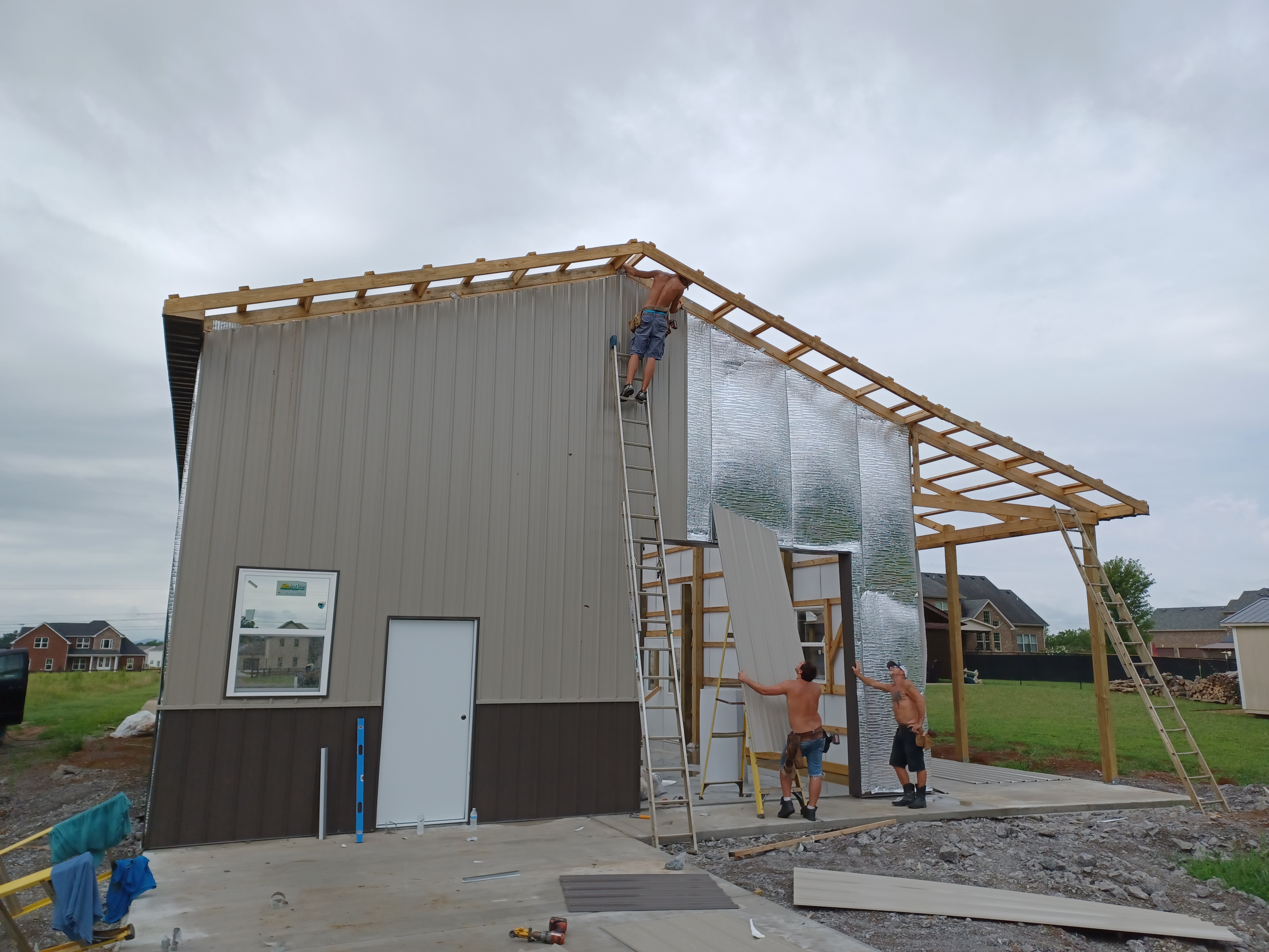 EXPECTATIONS: Finish gable end soffits, complete north wall siding,