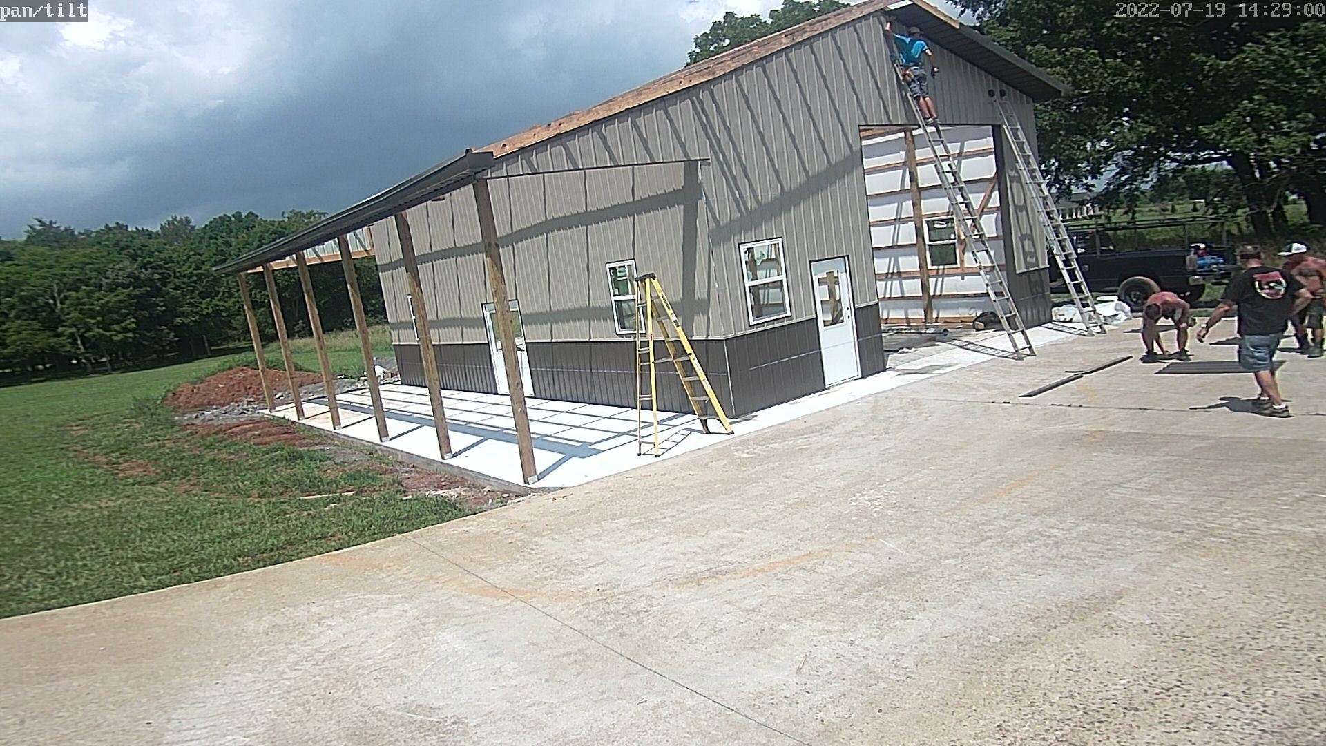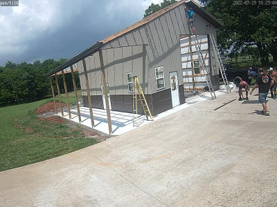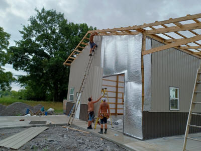 REALITY: Full crew arrived at 0800. Completed North wall siding.