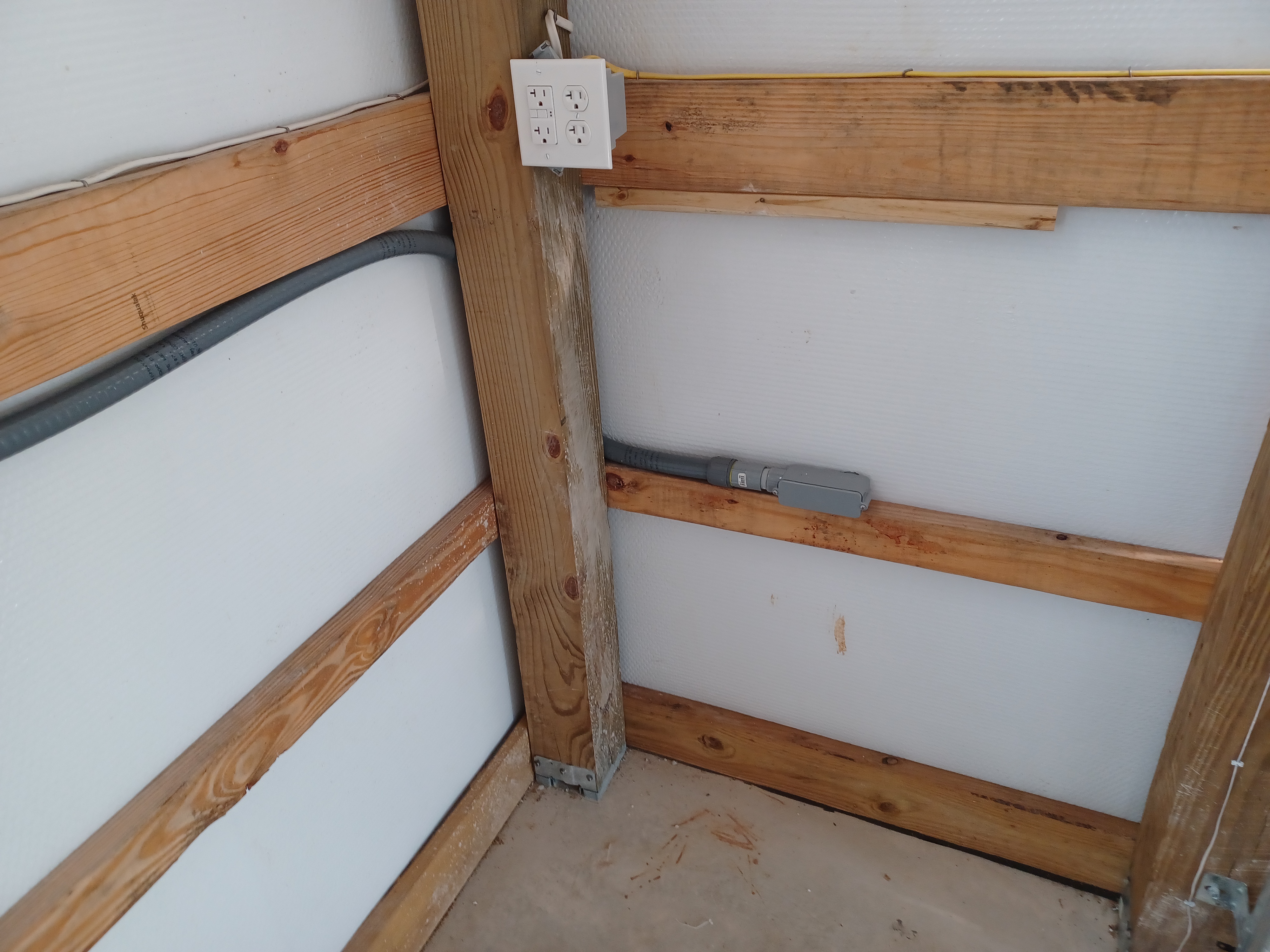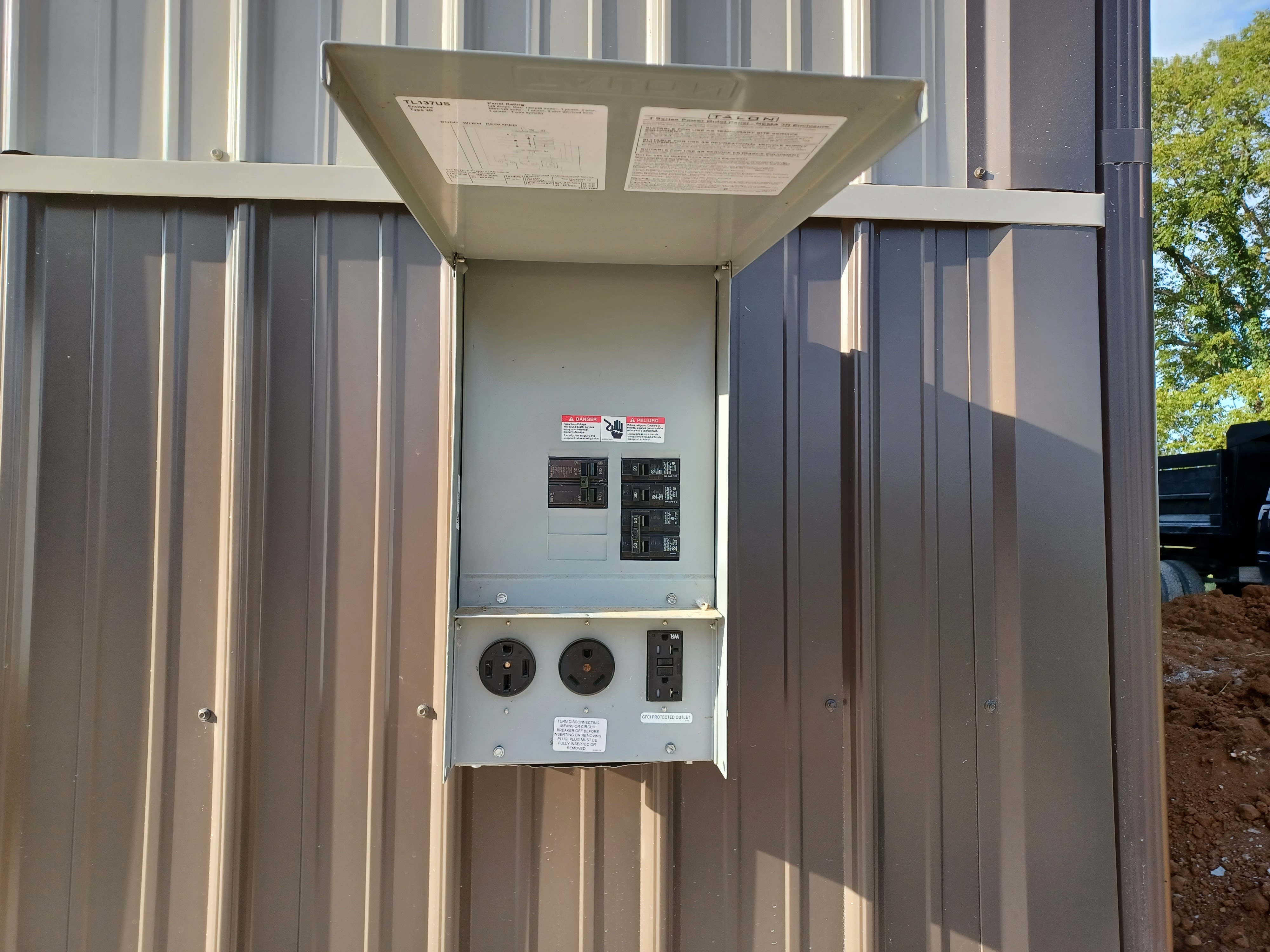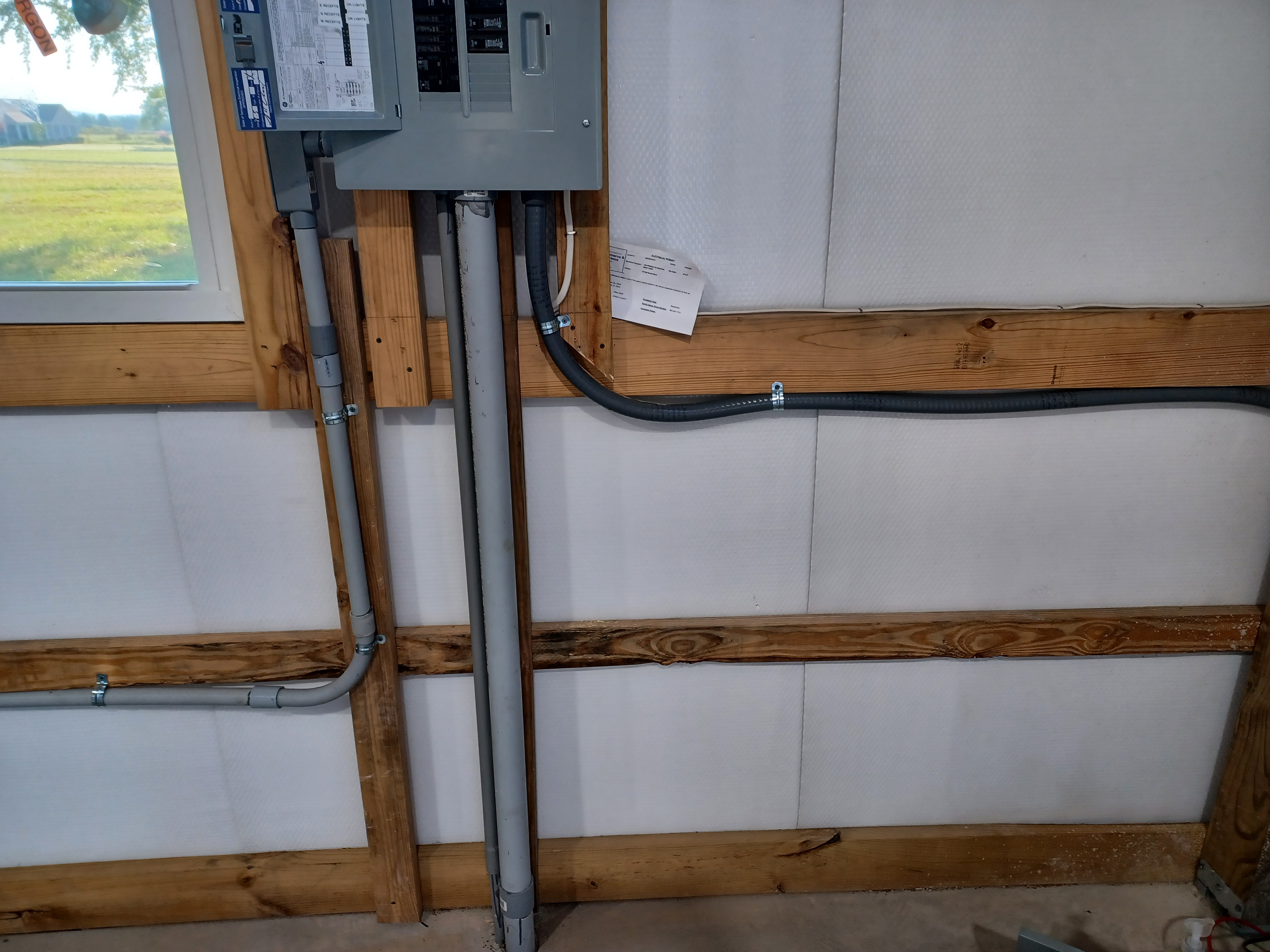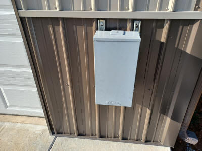 Installed conduit and wiring for the shed and installed RV Power Box on south wall