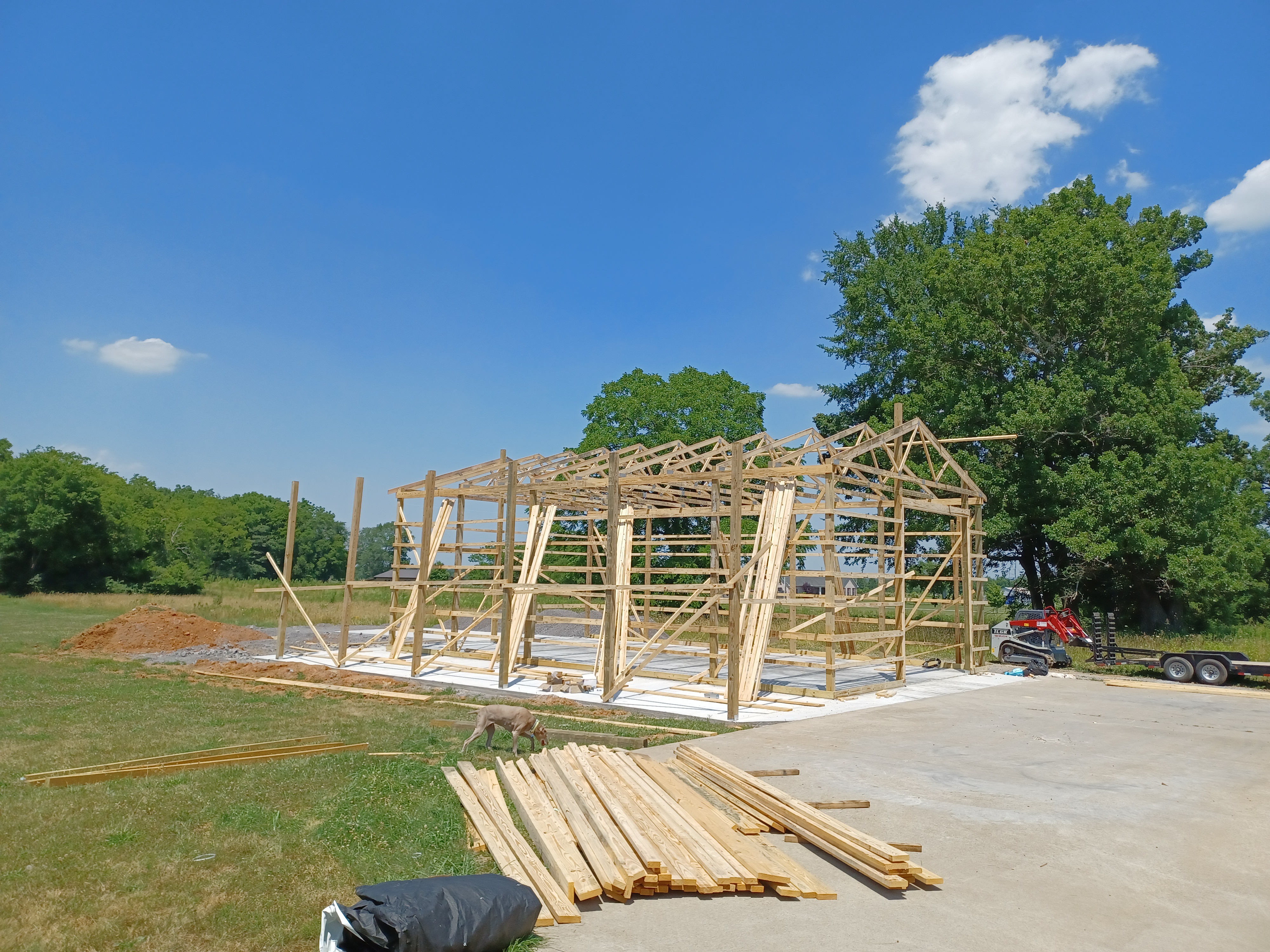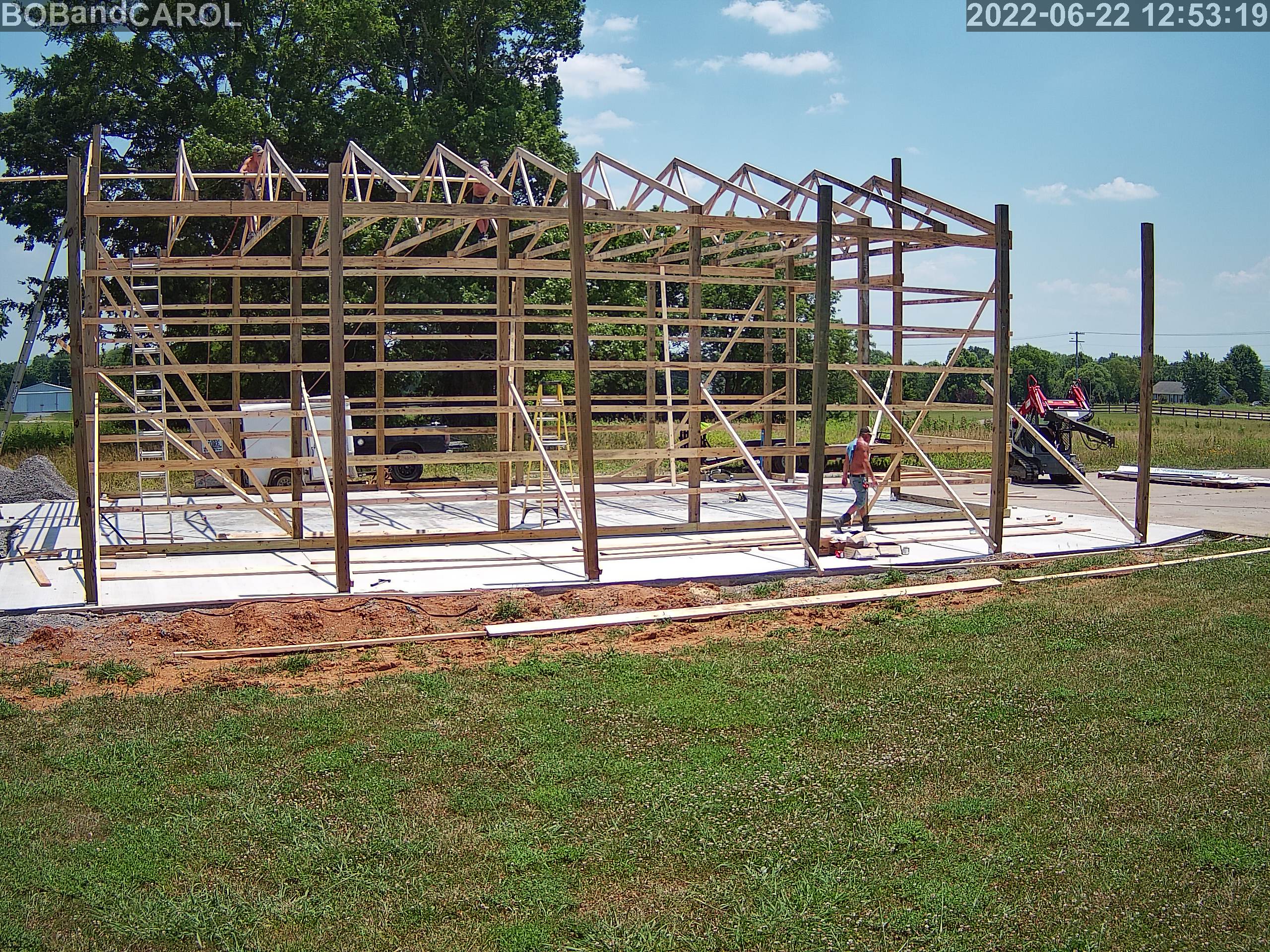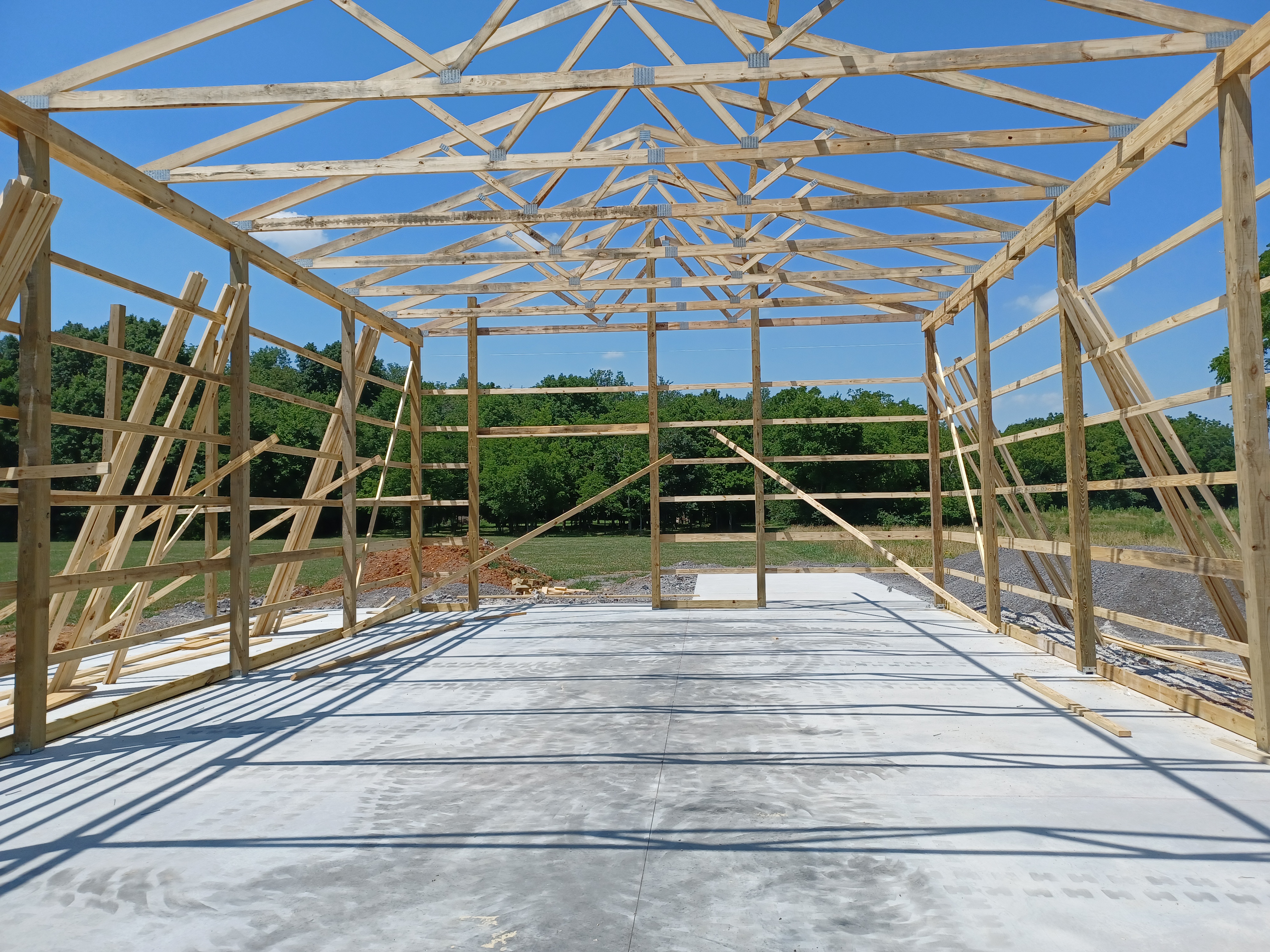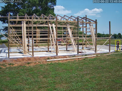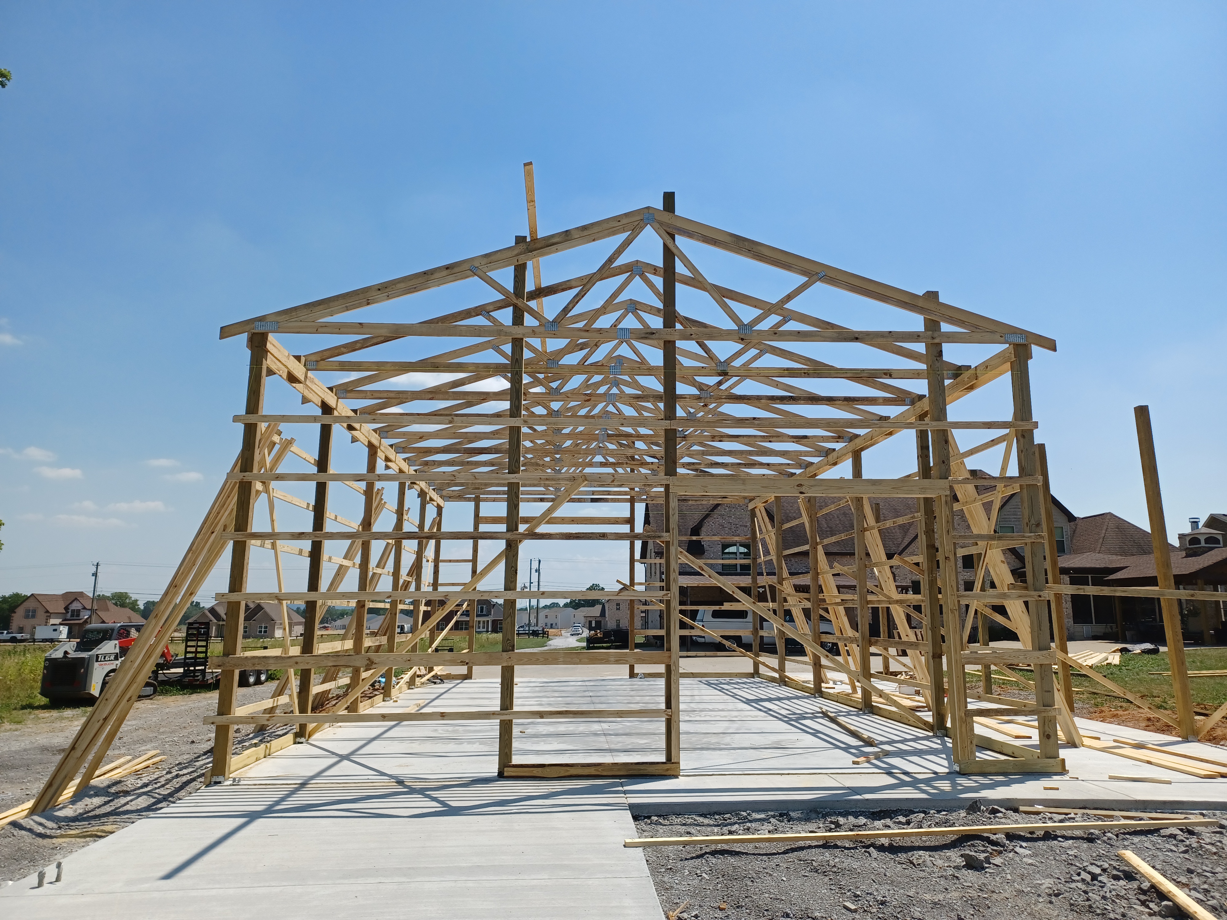 EXPECTATION: Install remaining posts, purlins, garage door frames