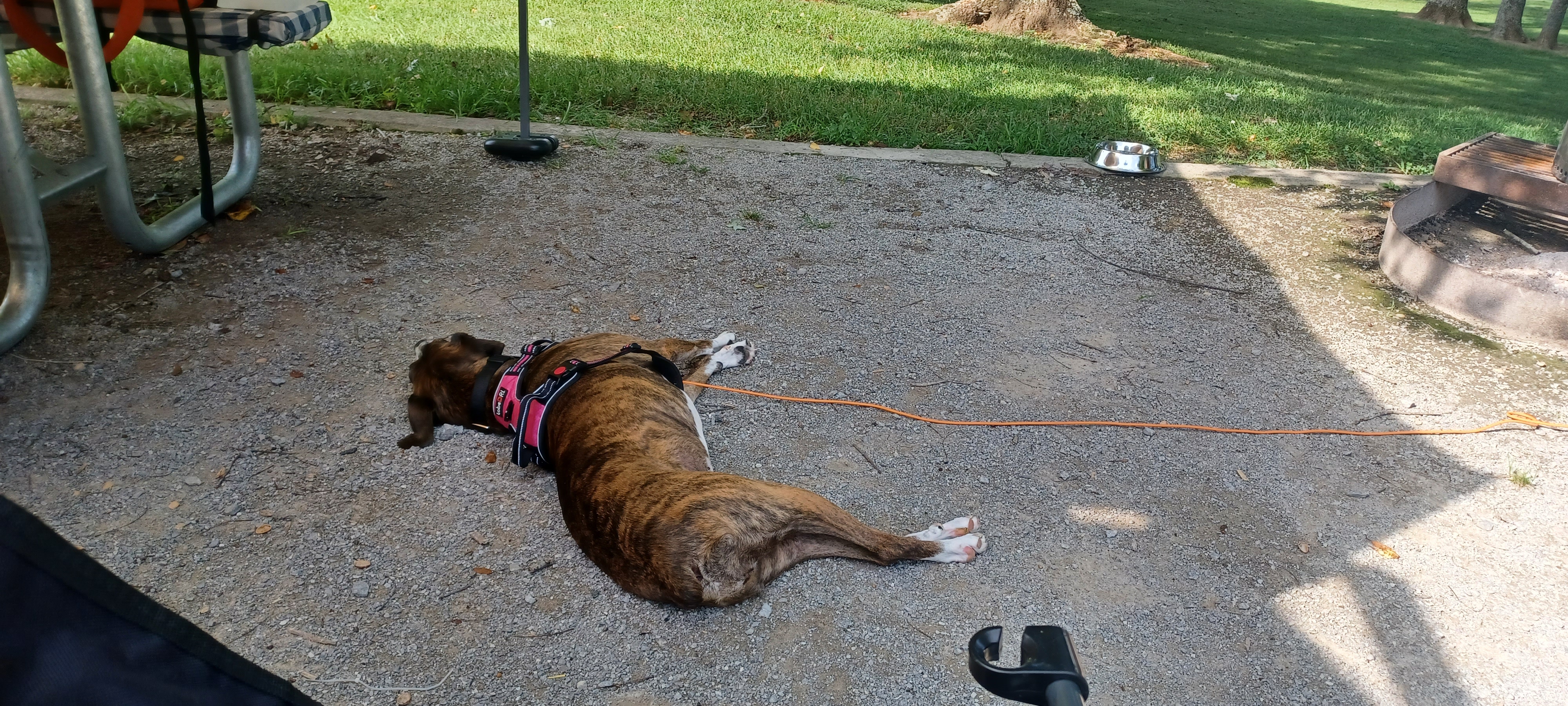 took here nap under the picnic table.