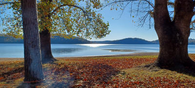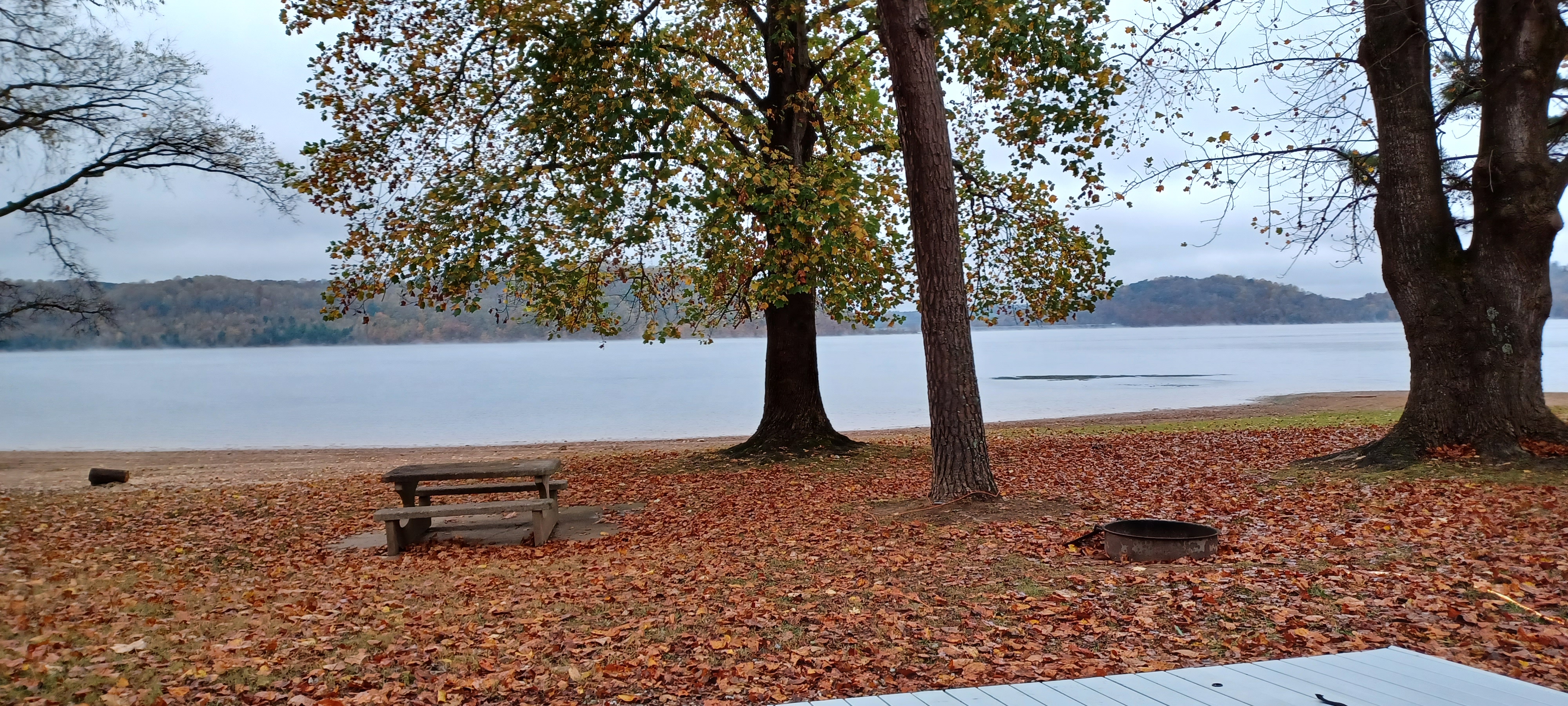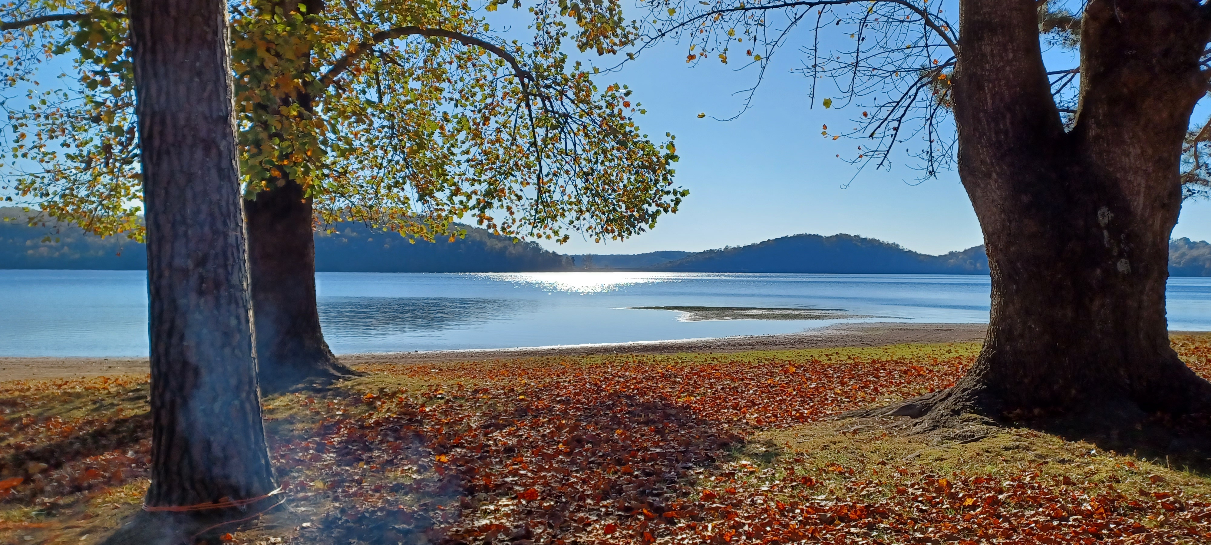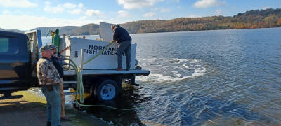 leaves still attached but the drought ruined the fall colors this season. Observed Fish & Game dispersing a fresh batch of Croppy.